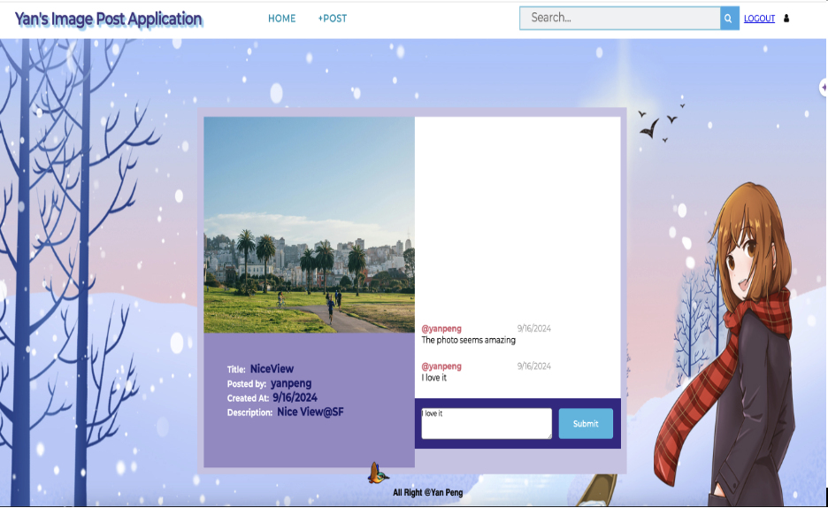 A full-featured photo sharing platform with user authentication, image posting, search functionality, and commenting system.