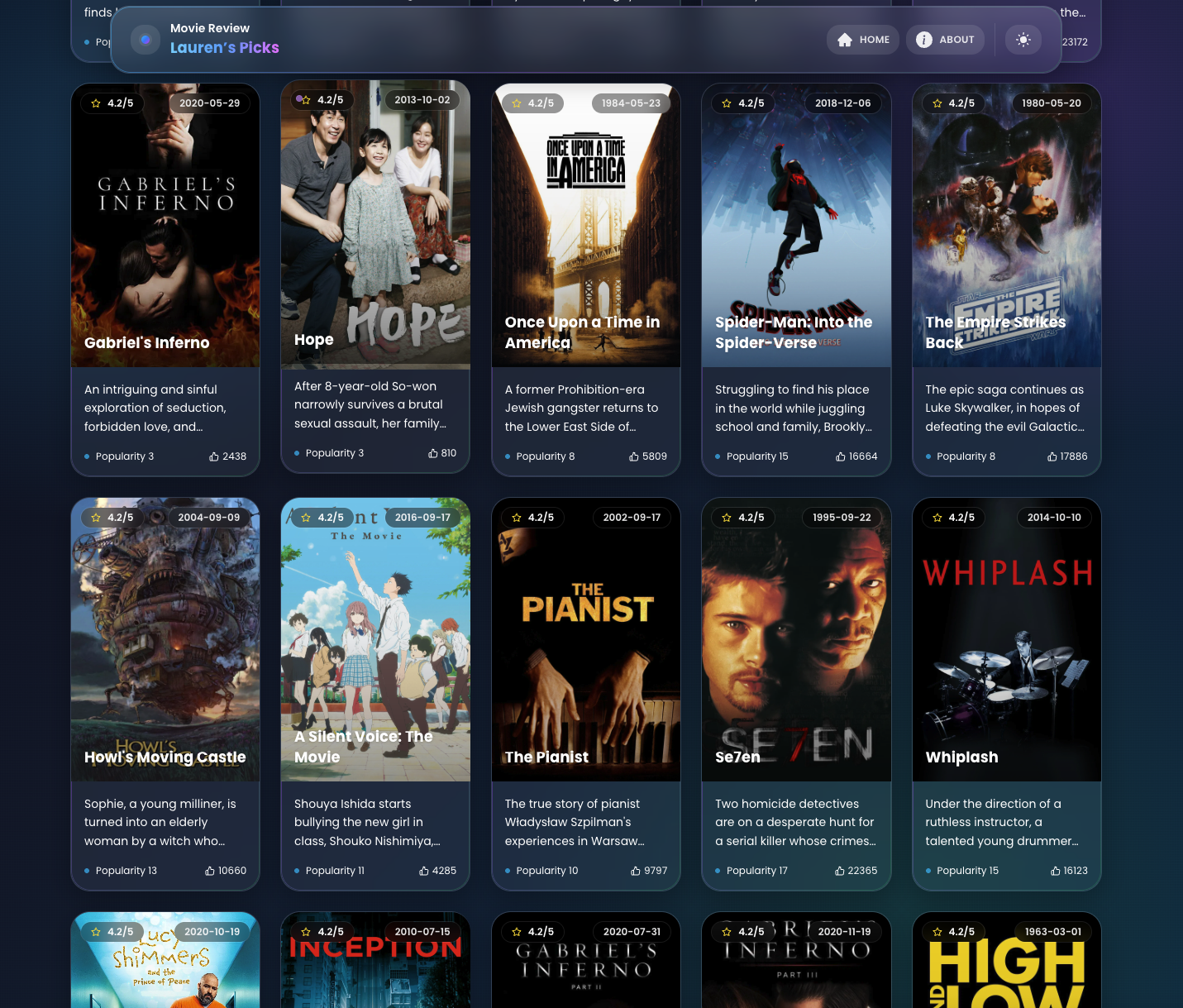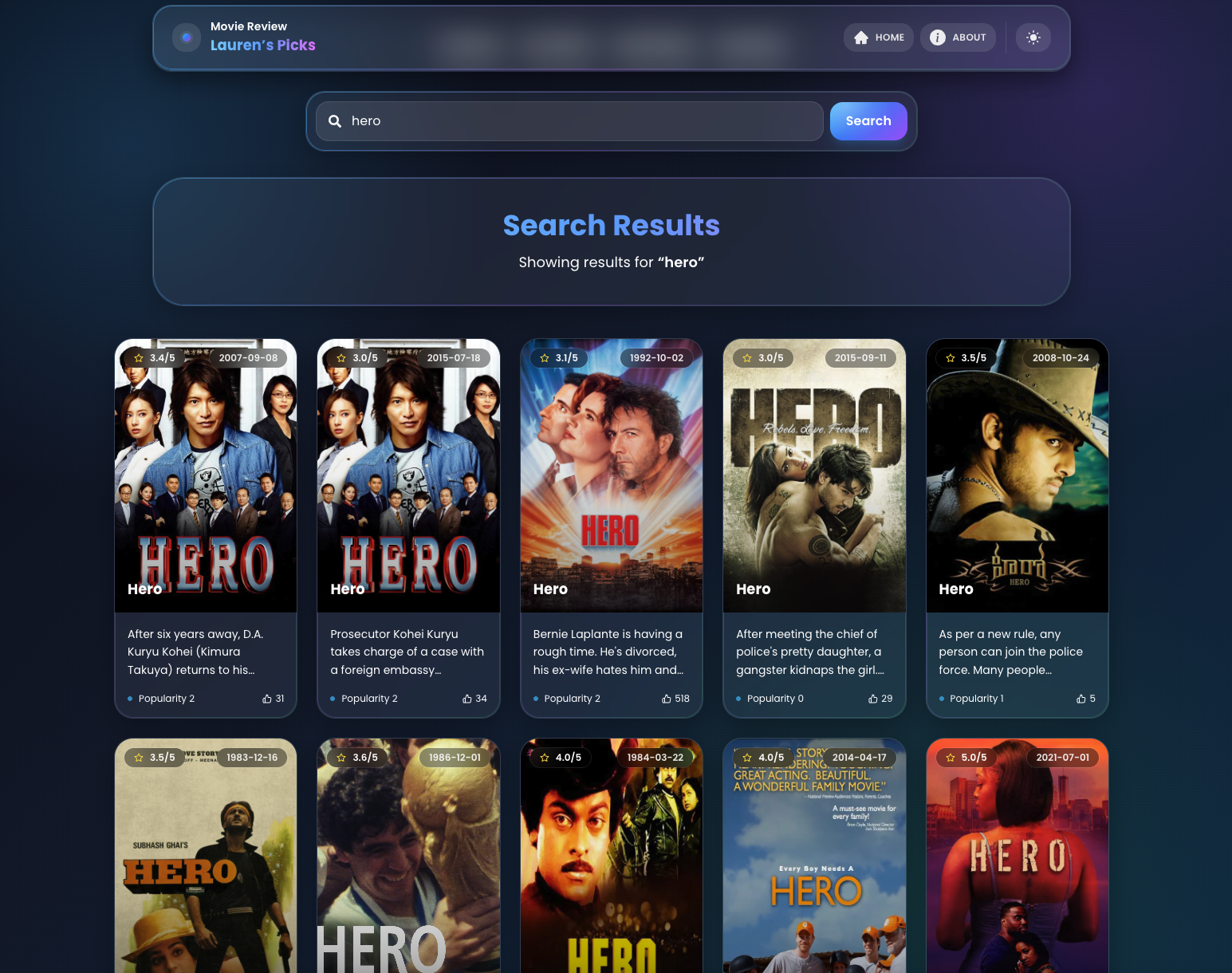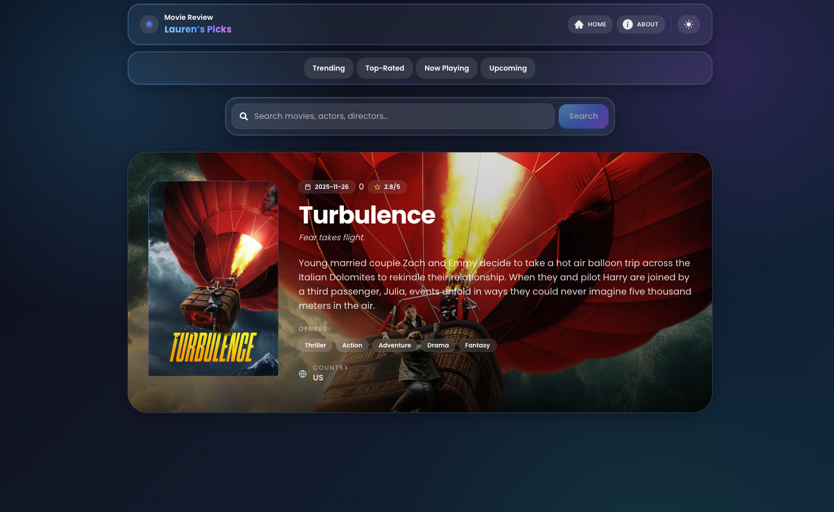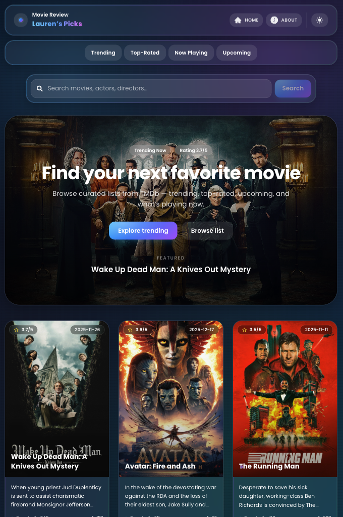A comprehensive movie review platform with IMDB API integration, featuring top-rated movies, search functionality, and dark mode support.